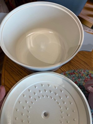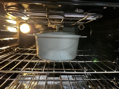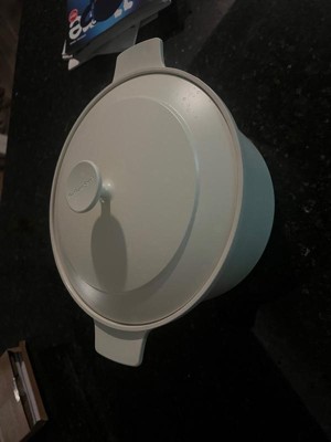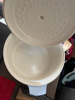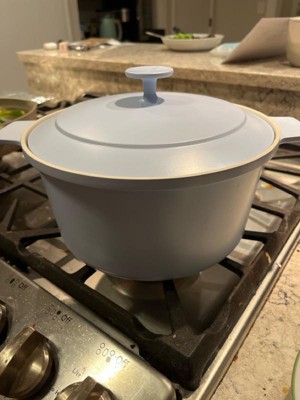 [This review was collected as part of a promotion.] I adore this little Dutch oven! The color is so pretty in person. It’s also extremely lightweight which is huge for me. I’m unable to lift the other brands and this is very easy on the wrists. It has been perfect for me and my partner as we make “pot roast for two.” The only downside was upon its arrival it looked maybe opened and returned with black flakes inside. Not sure if it was used and returned or just black flakes of paint from the packaging. Either way we really enjoy it and find it a nice alternative to our electric crockpot. Looking forward to experimenting with bread making in it too! I wish it had come with a recipe book because we were totally new to it but are happy that we are getting this new experience with this super cute blue little Dutch oven!
