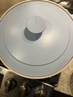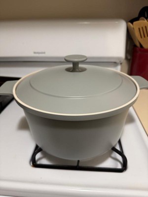 [This review was collected as part of a promotion.] This Dutch oven is absolutely beautiful. It appears kind of blue on the packaging but it’s actually grey with a glittery finish to it. It’s extremely lightweight which is nice for a Dutch oven. I have traditional Dutch ovens and they are very heavy. This would be nice for someone that struggles with heavy items especially when cooking. This is safe to put in the oven though I haven’t used it that way yet. What disappointed me is that I was simmering soup and the beans literally burned to the bottom of the pot while on the very lowest burner setting. It should not burn at that temperature. It is non stick as once I got the beans dislodged the pot itself rinsed clean. The handle on the lid is pretty tall and I’m not sure this will fit in my split oven. Also, the handles get very very hot to the touch. You have to use a hot pad to handle it even on the stove top.