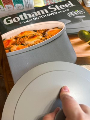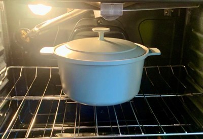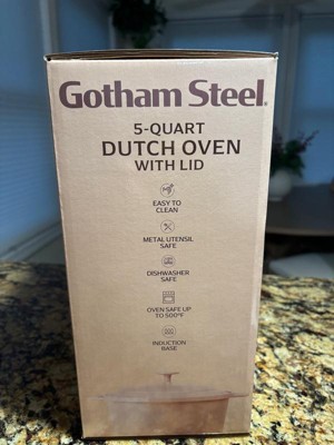[This review was collected as part of a promotion.] Absolutely love this Gotham Steel Dutch oven. It's different from the enamel one I have already because it's so much more light weight and easier to use and move around the kitchen. The color is beautiful and you can clearly see the great quality. I've made bread in the oven and soup on the stove using this Dutch oven and have been very pleased with how it works. It's easy to clean and bonus points for actually being dishwasher safe!
