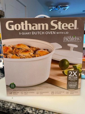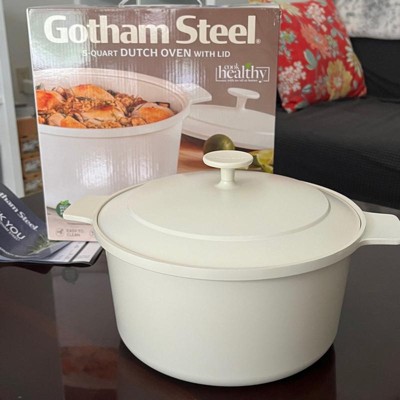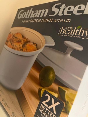 [This review was collected as part of a promotion.] This Gotham Steel Dutch Oven is everything! I love that it is not as heavy as most other pots, but it gets the job done equally, if not better, than the rest. Its non-stick surface is just what you want when searing meat and then deglazing the pot. I recommend!