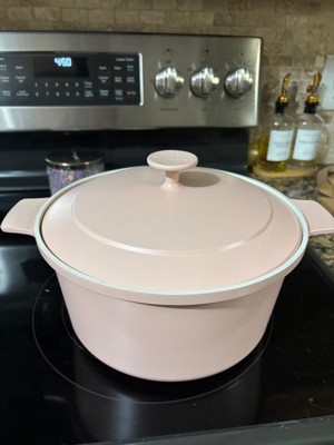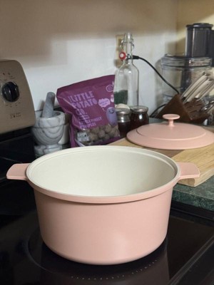 [This review was collected as part of a promotion.] I am a home chef who has tried a variety of dutch ovens and this ranks up at the top! The evenness of heating as well as the heat retention is impressive, especially for it’s weight. The ceramic nonstick coating works so well, I didn’t even have to scrape the sides because the function of the titanium & diamond nonstick is that good! The sparkling appearance and pink color is very nice looking. It can go from stovetop to oven up to 500 degrees (many dutch ovens have a lower heat tolerance or force you to buy a high-heat resistant knob). I highly recommend this dutch oven!
