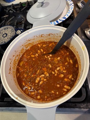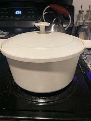 [This review was collected as part of a promotion.] I’ve used this Dutch oven to make soups and pasta dishes. I like the size and can use it for cooking many different things. It seems to cook evenly. It is lightweight, and time will tell how durable it is. I do not like that the handles get hot when the pot is in use.
