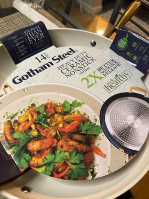 - ULTIMATE CERAMIC NONSTICK: The Gotham Steel nonstick cooking surface is coated three times and then reinforced with diamonds to deliver the ultimate food release. No seasoning or even oil or butter needed, makes for healthier eating, and provides for hassle free, 1-2-3 cleanup.