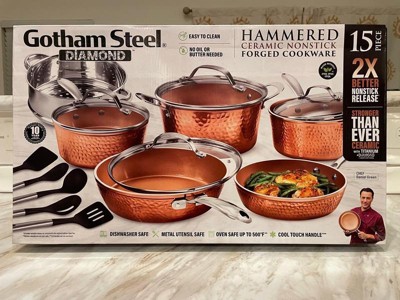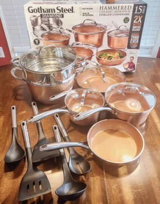 Gotham Steel Nonstick Pots and Pans 15 Pc Set Ceramic Cookware Kitchen Set Hammered With Frying Skillet Saucepan