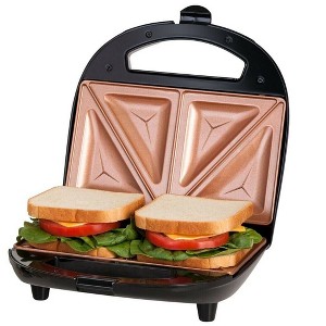 - Cook Two at Once: The dual grill plates let you make two sandwiches or paninis simultaneously, saving you time while delivering evenly grilled results every time. The copper-colored plates add a stylish touch to your kitchen.