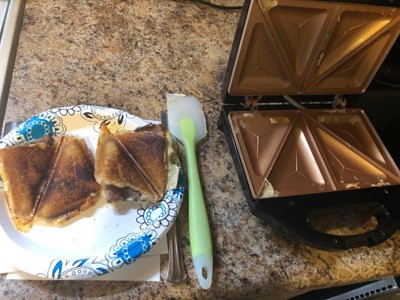 [This review was collected as part of a promotion.] I got this a few days ago and just used it for the first time. It was easy to use and you don’t need the extra butter in order to make tasty sandwiches for lunch or dinner. My family loves that they can do it by themselves.