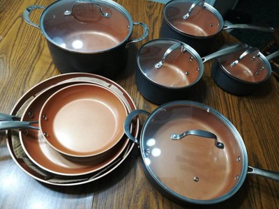[This review was collected as part of a promotion.] Strikingly gorgeous black & copper color combination, sturdy & hefty, non-stick & non-toxic, sturdy handles, even heat distribution. Love this pot & pan set. Strikingly gorgeous black & copper color combination, sturdy & hefty, non-stick & non-toxic, sturdy handles, even heat distribution. Love this pot & pan set. A solidly made set of every size cookware you could need ... these will last a very long time.