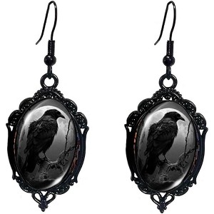 Gothic Cameo Earrings with Witch & Raven Motifs