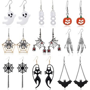 9 Pairs of Halloween Earrings – This value-packed set includes 9 unique Halloween-themed earrings featuring classic icons like pumpkins, skulls, bats, spiders, ghosts, and more—perfect to match every costume or spooky mood.