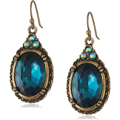 Gothic Rose Cameo Dangle Earrings - Vintage Crystal Glass Flower Drop, Dark Punk Victorian Jewelry Red One Size