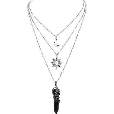 Gothic Witch Cross Necklace With Layered Zircon Pendant And Black Beads For Halloween Costume