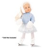 - This ultimate wintery outfit includes tulle skirt with glitter, and matching light blue body suit and sweater. Top it off with plush mittens on a string and plush ear warmers. Please note: doll, tights and ice skates not included.