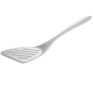 The Gourmac slotted turner is made of the highest quality melamine, this award-winning Spatula / Turner is perfect for both cooking and serving. This turner has an angled edge. With no hole in the handle, it looks great on the table and is comfortable in your hand when cooking.