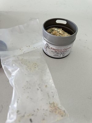 - French Onion Seasoning: Sea Salt, Onion, Sugar, Dill Tips, Chives, Garlic, Basil, Chervil, Tarragon, White Pepper, Parsley.