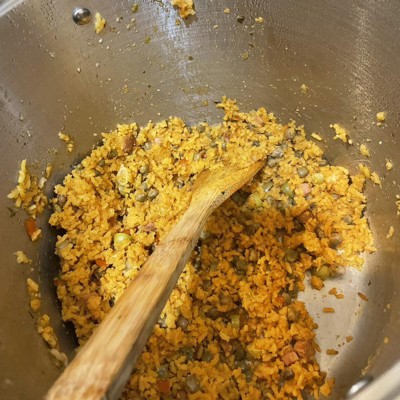 Best puertorican rice I ever made. One packet per cup of 🍚. Get some Goya chick peas. Spanish 🫒 and some diced ham. Chicken bouillon powder. I prefer knorr. Small can of tomato sauce and avacado oil. Toast rice in oil. Make some sofrito (yellow onion, bell pepper, garlic)