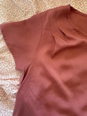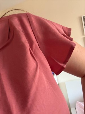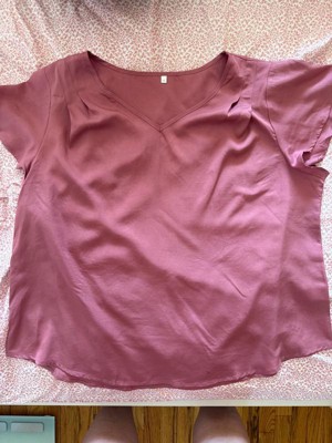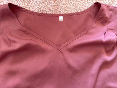 [This review was collected as part of a promotion.] It’s a comfortable top with a pretty design and is very stylish. I love the V-neck and the detailing on the sleeves. The mauve color is also nice and is very in right now. The fit is true to size and the fabric is thick. I would appreciate a tiny bit of stretch in the material, as us plus size girlies like that little bit of comfort.