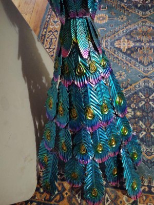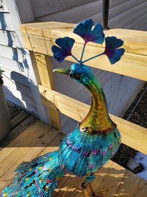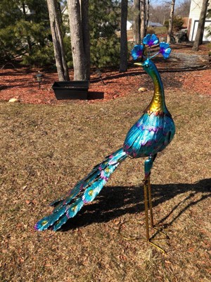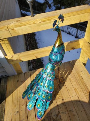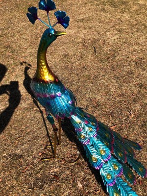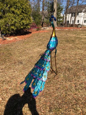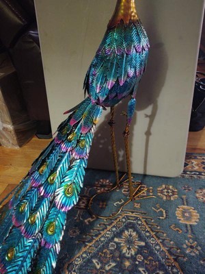 [This review was collected as part of a promotion.] This Tall Indoor/Outdoor Metallic Peacock Standing Yard Statue Decoration, Multicolor. Is gorgeous accent to my yard. It's day's look at me without being too gaudy.