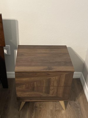Graceland 2 Drawer Wooden Nightstand Walnut Brown/Gold - Baxton Studio