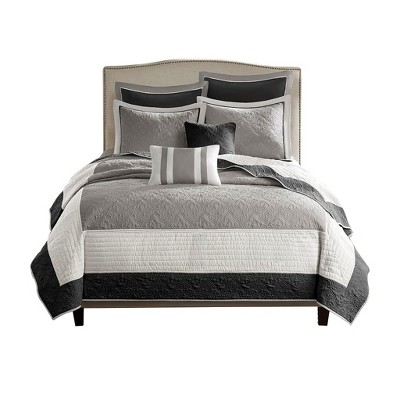 Gracie Mills Becker Cozy Reversible Pick Stitch Quilt Set with Matching Shams - King/California King - Black