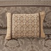 Elevate the ambiance of your room with our Luxurious Elegance 7-Piece Jacquard Comforter Set. Crafted with meticulous attention to detail, this set offers a sumptuous update to your current decor, turning your bedroom into a haven of opulence. The centerpiece of this ensemble is the polyester jacquard comforter and shams, which boast intricate leaf, striping, and ironwork motifs. These exquisite patterns add a touch of richness and sophistication to your decor, creating a captivating focal point in your bedroom. Pops of luster are thoughtfully incorporated throughout the collection, further enhancing the lavish feeling of your space. To add the perfect finishing touches, three decorative pillows are included. These pillows feature pleating and embroidery details that correspond harmoniously with the comforter's design, ensuring a cohesive and elegant appearance. A rich bedskirt completes the ensemble, expertly bringing the entire look together and providing a polished finish to your bedding setup. Indulge in the luxurious comfort and aesthetic appeal of our Luxurious Elegance 7-Piece Jacquard Comforter Set, and transform your bedroom into a sanctuary of opulent style and sophistication.