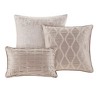 - Luxurious chenille jacquard pieced in taupe matte charmeuse comforter set