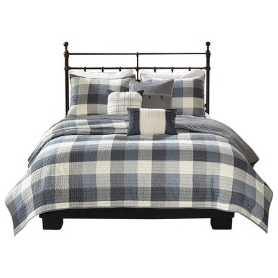 Gracie Mills Ezekiel Tranquil Blossoms 6-Piece Printed Quilt Set with Throw Pillows - King/California King - Grey