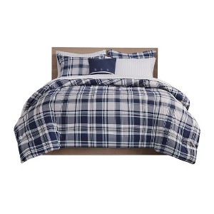 Revitalize your bedroom with the Reversible 8-Piece Comforter Set with Sheet Set. The reversible comforter and shams (1 in Twin Sizes) feature a navy plaid print on the face and a white plaid print on the reverse, offering a charming casual look. Additionally, a coordinating square decorative pillow adds a finishing touch to the comforter. The set also includes a grey sheet set, complete with a flat sheet, fitted sheet, and 2 pillowcases (1 for Twin Sizes). OEKO-TEX certified, this bedding set ensures quality comfort and wellness, featuring an anti-microbial treatment that provides built-in freshness protection, reducing the growth of odor-causing bacteria and keeping fabric lasting longer. Note: This bedding set may come in rolled or compressed packaging and will need to be fluffed up. Use a steam iron to help remove wrinkles more easily.