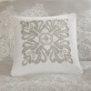 - Features beautiful white chain stitch embroidery in an intricate damask pattern and natural palette of grey and beige