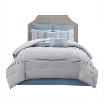 - Set includes comforter, 2 shams, 2 euro shams (3 in King size), 2 square and 1 oblong decorative pillows