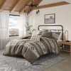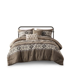 Upgrade your bedroom with the Gracie Mills Tyson 5-PC Comforter Set, featuring a bold Southwestern-inspired design with stripes and geometric patterns in rich hues of brown, tan, grey, and black. Printed on soft herringbone polyester, this set enhances lodge-style aesthetics while providing ultimate comfort. Two decorative throw pillows showcase intricate embroidery, piecing, and top-stitching techniques for added texture and charm. Filled with hypoallergenic, dustproof polyester, this set ensures a restful and cozy sleep