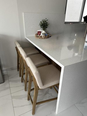 Loved the bar stools, it gives a modern touch to my kitchen. They are extremely comfortable. Bought 4 and I’m loving them!