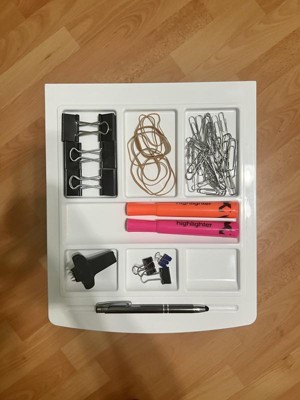 [This review was collected as part of a promotion.] I originally got this desk organizer for my small cubicle to help with storage. This is a great drawer organizer for small desk supplies. It slides opened and closed easily.