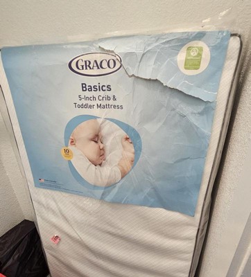 The Graco Basics 5-Inch Mesh Crib & Toddler Mattress features an ultra-soft, water-resistant outer cover that’s made of a soft, premium mesh material, and is easy to unzip for easy machine washing. GREENGUARD Gold Certified, this baby mattress has been tested for over 10,000 chemicals and VOCs to contribute to cleaner indoor air in your nursery — keeping your family top of mind. Baby Safety Alliance Verified, this Graco crib mattress has been third-party tested at an independent, CPSC-accredited laboratory to meet or exceed the highest federal and state safety standards applicable to its product category. Proudly made in the USA (with U.S. and imported materials), this Graco baby crib mattress and toddler bed mattress features a high-density poly-fiber core (made with recycled content) and is free from fiberglass and chemical flame retardants. Designed to fit any standard full-size crib or toddler bed, the Graco Basics 5-Inch Mesh Crib & Toddler Mattress is backed by a 10-year limited manufacturer’s warranty.