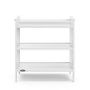 - CHANGING TABLE WITH STORAGE: Easy-to-match, easy-to-assemble baby changing table with 2 open shelves to help keep your nursery organized in style; Includes a water-resistant changing pad and safety strap