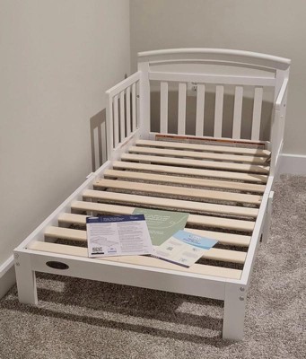 Facilitate your child’s smooth transition from crib to their first “big kid” bed with the Graco Benton Toddler Bed. With its timeless charm, clean lines, beautiful headboard, and versatile design, the Benton adds a classic touch to any toddler’s bedroom. Thoughtfully crafted for growing toddlers, it combines style and safety with easy assembly and built-in guardrails on both sides for added protection. Crafted from durable materials, the Benton Toddler Bed meets or exceeds ASTM and CPSIA safety standards for your peace of mind. It is also GREENGUARD Gold Certified, having been screened for over 15,000 chemicals and VOCs to support healthier indoor air. Its Baby Safety Alliance Verification further confirms compliance with the highest safety benchmarks through independent, third-party testing. Designed to fit any standard full-size crib and toddler mattress (Graco toddler mattress recommended), the Benton offers both an easy-to-match style and practical convenience. With the included toddler safety guardrails, your little one can sleep securely as they gain independence. Like all Graco nursery and kids’ furniture, the Benton Toddler Bed is backed by the Parent Tested Parent Approved (PTPA) Seal of Approval, reflecting our ongoing commitment to quality and trust. Assembly required. Mattress sold separately. Includes toddler guardrails for a safe and confident bedtime experience.