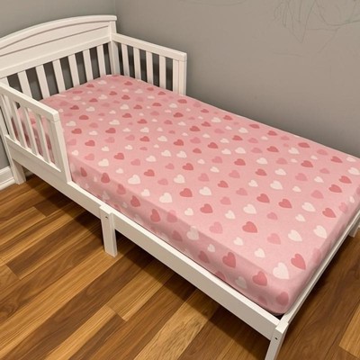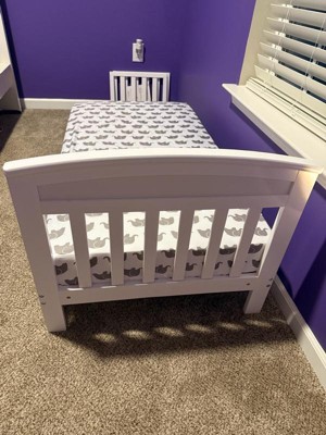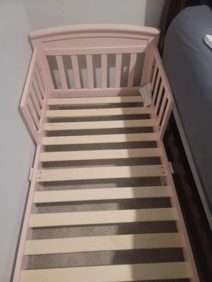 [This review was collected as part of a promotion.] This pink toddler bed is adorable, sturdy, and very easy to assemble. It’s the perfect size for transitioning from a crib, with side rails for safety and a low height for easy access for a toddler. A firm mattress is recommended for best support. Overall, it’s a great transition bed.