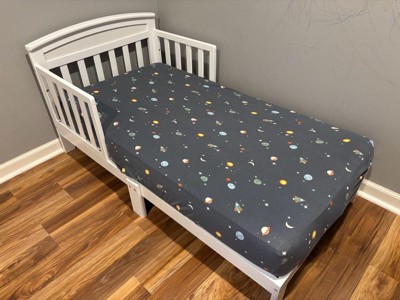 - TODDLER BED DIMENSIONS: Width (53.21 in) x Depth (30 in) x Height (25.2 in)