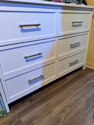 [This review was collected as part of a promotion.] This is such a beautiful Dresser I love the color as well as the silver handles! I love that it’s a very simple modern style that will go perfectly in any room. Something that stood out to me is when you open one drawer the rest lock which is perfect for when my kids are watching me store away there clean clothes they try to open the other drawers and can’t and of course it’s ver spacious! Overall I’m in love with the dresser it’s beautiful and has the perfect qualities for a nursery room!