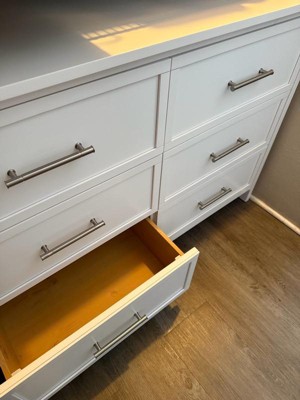[This review was collected as part of a promotion.] I’m not a huge fan of the aesthetic of this dresser. The assembly was similar to ikea in the sense that it took a while (~2-3 hrs) and patience. It has a nice safety feature for toddlers where you can’t open more than 1 drawer at a time so they can’t climb it. It would be great if it came with something to anchor it to the wall. The drawers glide smoothly which is nice. Plenty of space, and like a quarter of the price of the one I really wanted at west elm.