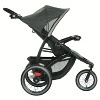 A: Thanks for your interest in out products! The Graco FastAction Jogger LX Stroller has air-filled rubber tires and offers smooth ride on many terrains, and a locking front swivel wheel. We hope this helps! Graco Team