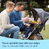 - Includes: Stroller and car seat, infant car seat base, child and parent trays with cup holders