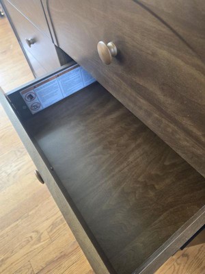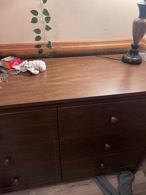[This review was collected as part of a promotion.] Sturdy 6 drawer dresser in beautiful hazelnut finish. Interlocking drawer design where only one drawer opens at a time as an extra safety precaution. Made out of durable material and easy to match to other furniture. Highly recommend!