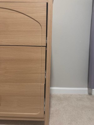 [This review was collected as part of a promotion.] I will start with the positives. The color of this dresser is beautiful. It’s also heavy and feels like it would be sturdy. However, this was a disaster from start to finish. The holes for the wooden dowels were not lined up, resulting in buckling at the front of the dresser. Then when all the drawers were put in, they don’t line up at all and are very hard to open and close because of it. I have two starts because I contacted the manufacturer who is sending me the necessary pieces to hopefully solve the problem.