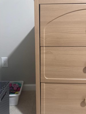 [This review was collected as part of a promotion.] I love the look of the dresser it looks very nice and modern. I will say when putting it together a couple of the end pieces that have holes that you put the wood in didn’t line up exactly. So I did end up having to remove a couple of them that way everything else would pop into place, other than that it wasn’t bad to put together. But again other than that I love the style and the clean, modern look it gives. I would recommend I think I just got one that may have been a tad defected. The size was great and enough to hold my daughters clothes like t-shirts, work uniforms, bras, panties, etc. it can also hold sweatshirts I just wouldnt over fill it. I would love another one to add to my mud room I know that sounds weird but i have a vision, lol. I also wanted to note the price is reasonable for a 6 drawer dresser. So that’s always a plus and helps with the little issues I did run into.