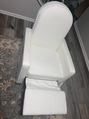 [This review was collected as part of a promotion.] This glider has been wonderful! The clean lines and aesthetic texture make for a beautiful addition to any home or nursery, and despite being a lighter color it does not show my black and white dogs' or grey cat's hair hardly at all. Pretty enough that I happily have it in my living room! Even though I have a cat that likes to scratch furniture, the material seems to be holding up very well. The reclining feature is smooth and quiet - you can easily put the footrest up or down without waking a sleeping baby. And the charging ports seem to work quite well! (Not fast charging, but I wouldn't expect them to be.) My husband put it together and said it was easy and straightforward. If you have a smaller space, this is a great option because it isn't bulky and saves you the space of an ottoman. I foresee getting years of use out of this item even long after the little one years!