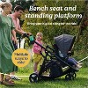 - Includes: Stroller with 2 stroller seats, a bench seat, and a standing platform