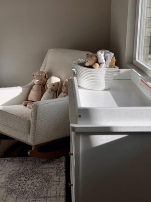 Introducing the Graco Sasha 3-Drawer Chest with Changing Table Topper—your solution for a stylish and organized nursery or kids' bedroom. The Sasha chest combines timeless design with practical functionality, featuring elegant scalloped carved detailing at the base and spacious drawers, all topped with a convenient changing table topper. This topper is perfectly designed to accommodate any standard-size changing pad (we recommend the Graco Premium Contoured Changing Pad). With its vintage-inspired charm and ample storage capacity, the Sasha offers both functionality and style, making it a versatile addition to any nursery or kids' bedroom. The chest’s design ensures safety, featuring an innovative interlocking drawer system that allows only one drawer to open at a time, reducing the risk of tipping. Additionally, the included furniture tip-over restraint kit further enhances safety. The Sasha is designed to grow with your child. Once the nursery years are over, simply remove the changing topper to transform the piece into a stylish and functional chest for your child's bedroom, ensuring longevity and versatility beyond the early years. Pair your Sasha 3-Drawer Chest with Changing Table Topper with the rest of the Sasha collection, including the Graco Sasha 5-in-1 Convertible Crib with Drawer and the Graco Sasha 6-Drawer Dresser, for a beautifully cohesive look.