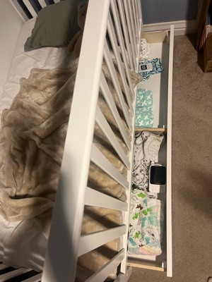 [This review was collected as part of a promotion.] Perfect! Has a drawer for blankets, sheets, etc. I love it it’s big and converts into a toddler bed later down the line for my little one! It’s very sturdy and was easy to put together. Came it reliable instructions. As I’m just a girl haha. I truly am obsessed and my baby girl seems to not mind being in there for bed. Is practical. DOES NOT COME WITH MATTRESS!