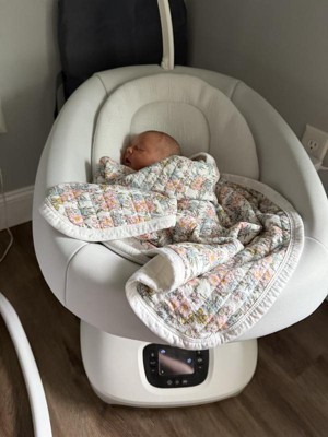 [This review was collected as part of a promotion.] I was hesitant to buy this due to the price and not knowing how much I would actually use it. Fast forward a couple days and it has already justified its price. My baby when all other needs are met, she is fed and changed, but is still inconsolable, I put her in this and within a few minutes it has found the right combo to soothe her and sometimes even put her to sleep. It has given me a sense of peace when I need to do some work around the house, knowing she is safe and content and that if she starts to fuss it will change modes/speeds/sounds to hopefully relax her back to being her happy self. The only con I have is the cover being a light color. I am always worried about her having a diaper blow out and if the fabric was a darker color it would make me feel better. But other than that it was an easy set up, and she seems to enjoy it! If you’re on the fence I highly recommend if you are needing some time back in your day to be baby free but still have peace of mind.
