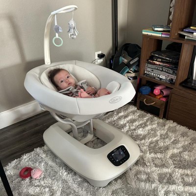 [This review was collected as part of a promotion.] Graco does it again. This swing isn’t your ordinary swing. First of all, the padding is so soft and cozy any baby would love it. The seatbelt is good quality material and gives me peace of mind knowing my baby is secure. This has a smart sense, so when my baby is crying it switches up the type of movement, it increases the speed and vibration to help soothe your baby. The recline on the seat is has 3 asjustabke settings which I like, since my baby has reflux. There’s several soothing sounds to listen to and the material is organic which is a plus. I only wish it swayed side to side because my baby loves that. The price is a tad bit expensive for a swing, however it is a very nice swing. I received an incentive to write this review.